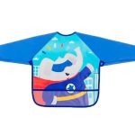 Este babero con mangas está hecho de tejido impermeable, ideal para evitar que el bebé se ensucie durante las comidas. Cuenta con un bolsillo para atrapar migas y un cierre ajustable al cuello. Perfecto para proteger la ropa del bebé mientras aprende a alimentarse, manteniendo la limpieza en su entorno. Tamaño: 39 cm x 75 cm