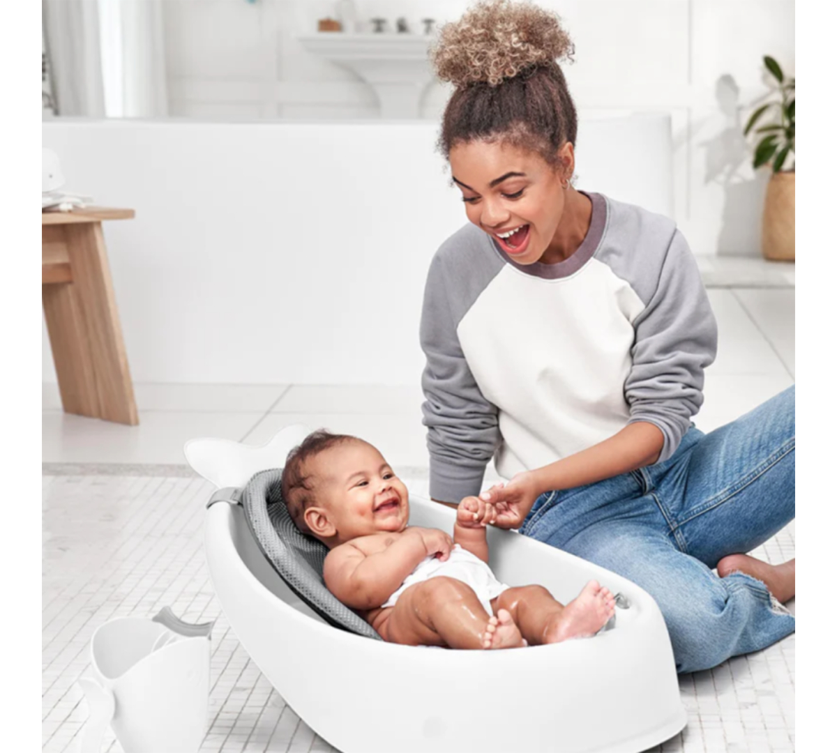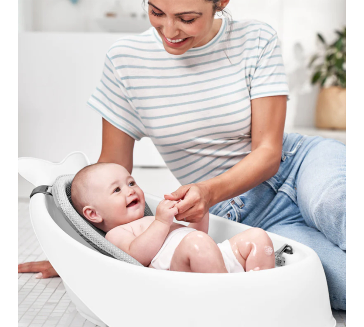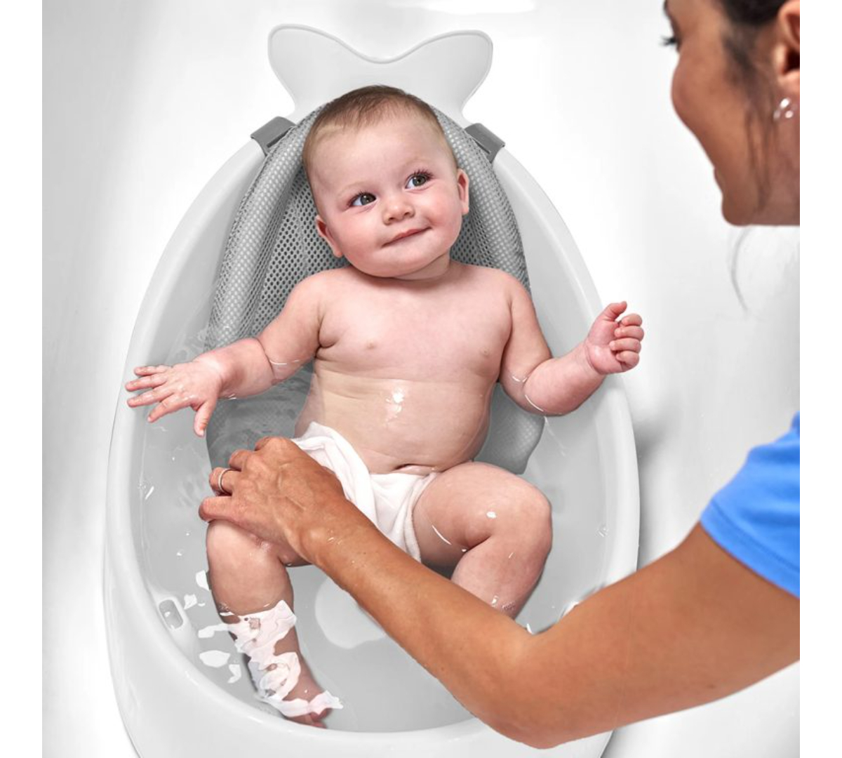 Crece con tu bebé desde recién nacido hasta que aprende a sentarse, siendo la única bañera que necesitarás. Su arnés de malla de secado rápido se ajusta en dos posiciones ergonómicas: una más alta para brindar soporte completo al recién nacido y otra más baja para acompañar al bebé cuando empieza a sentarse. Luego, podés retirarlo por completo para usar la bañera amplia y cómoda, sin plásticos incómodos. Su diseño incluye textura antideslizante, tapón de drenaje y un gancho giratorio para colgarla fácilmente.