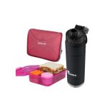 Se complementa con la Lunchera Bento Box Sistema Lunch To Go, ideal para llevar comidas de forma ordenada y segura, permitiendo separar distintos alimentos y conservar su frescura durante el día. Además, incorpora la Lunchera Sistema Ribbon de 1 litro, práctica y versátil, ideal para porciones más grandes o comidas adicionales.