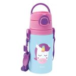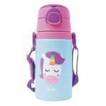 Botella buba de Aluminio 400ml c/Pajita y Cordón de Transporte Unicornio