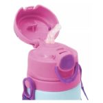 Es ideal para cualquier momento, perfecta para almacenar agua, jugos y tés. Fabricada en aluminio, es resistente e higiénica. Cuenta con una pajita de silicona, tapa con traba de seguridad y cordón anti-caídas para que el niño pueda llevarla segura a todas partes en su hombro. Perfecta para llevar a paseos y viajes.