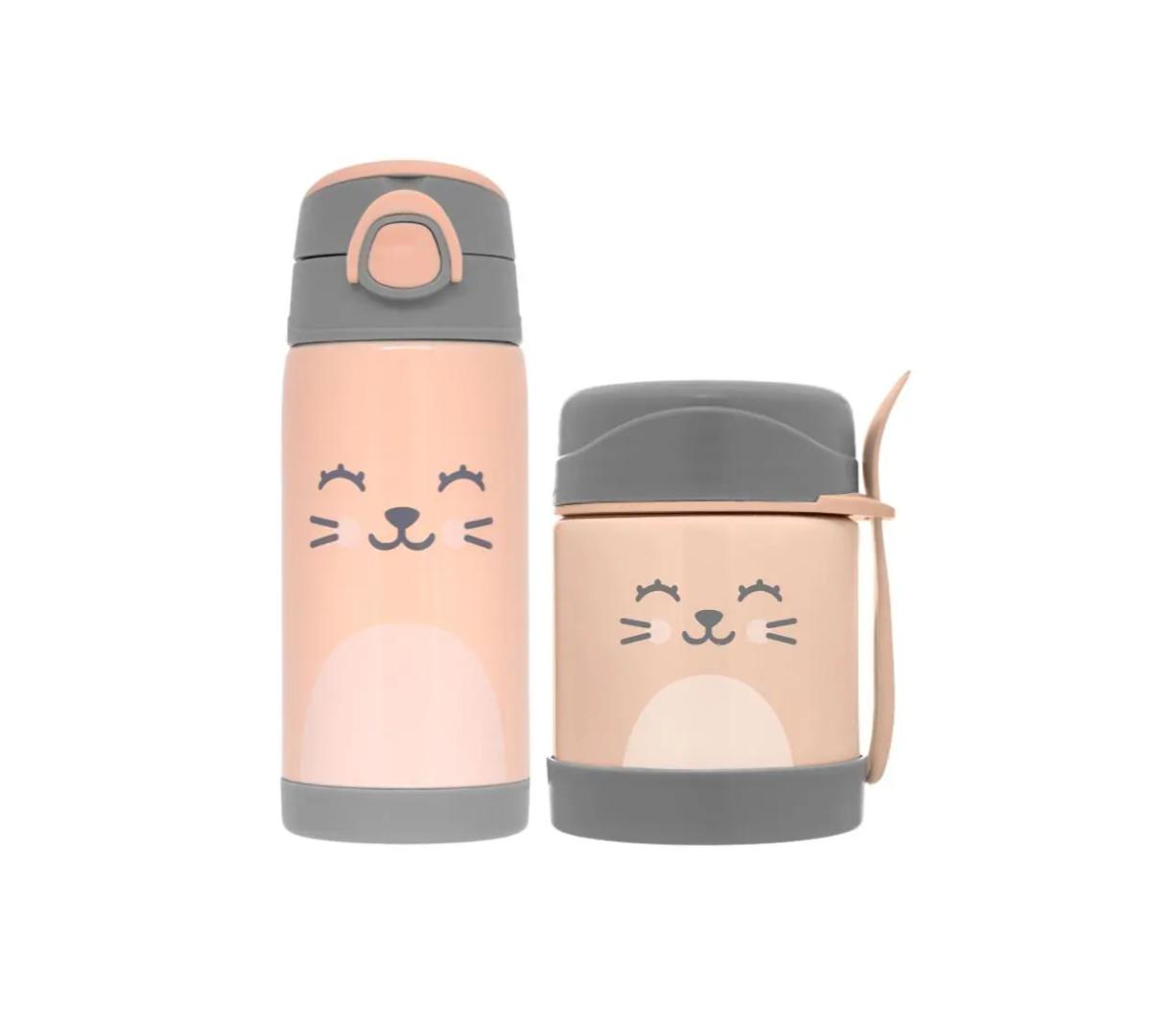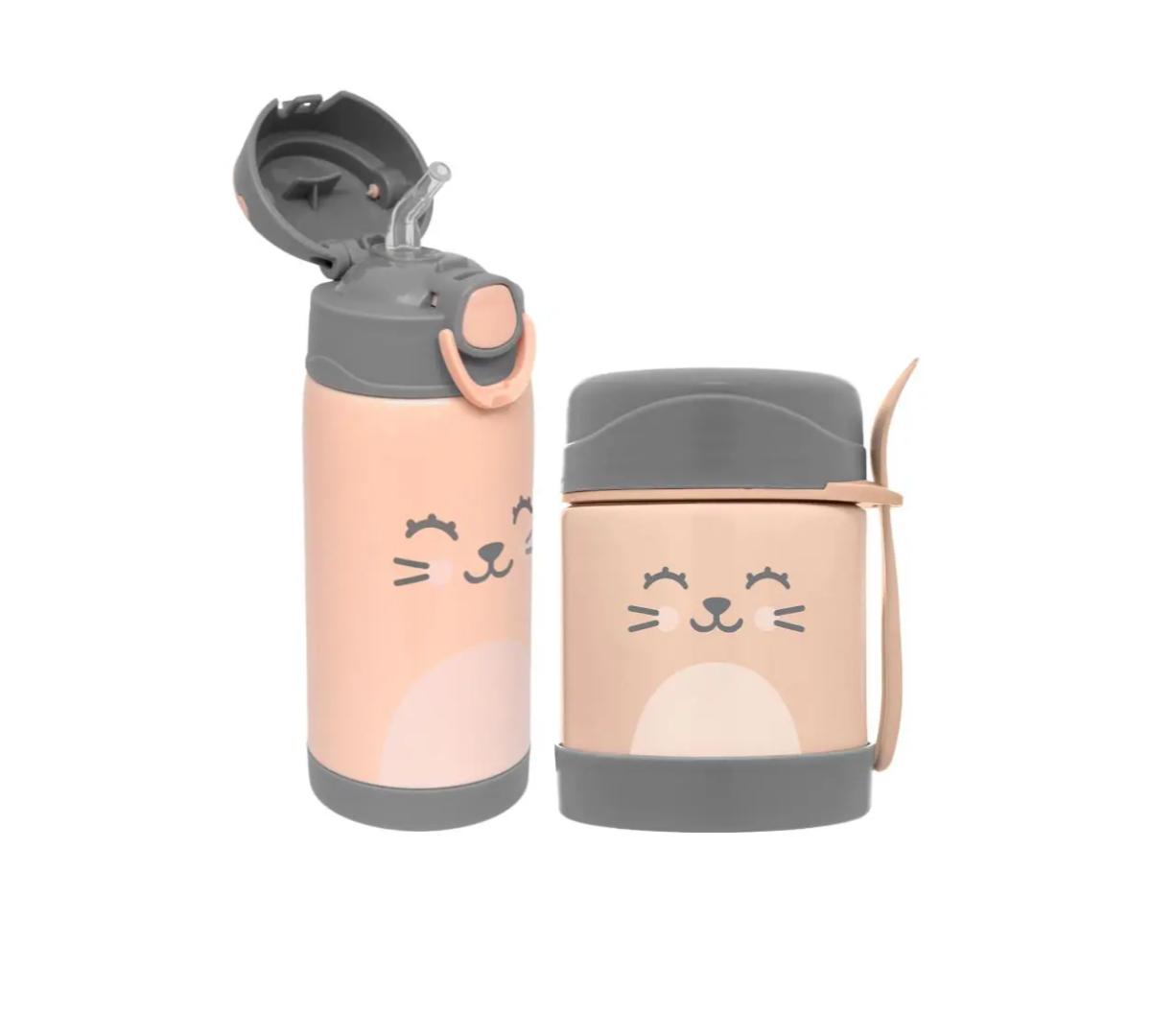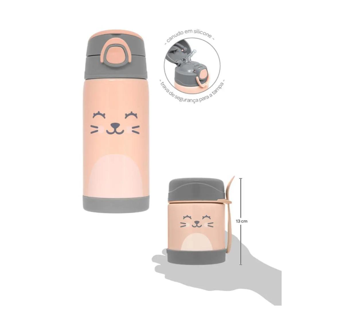 Botella de Térmica 400ml + Pote Térmico Antiderrame Buba Diseño Gatito Coral