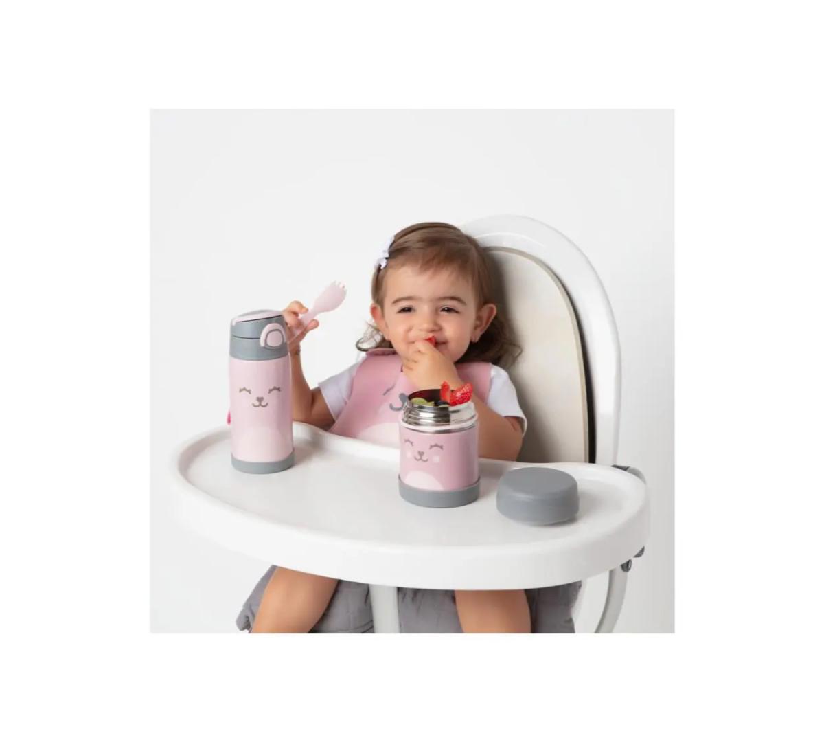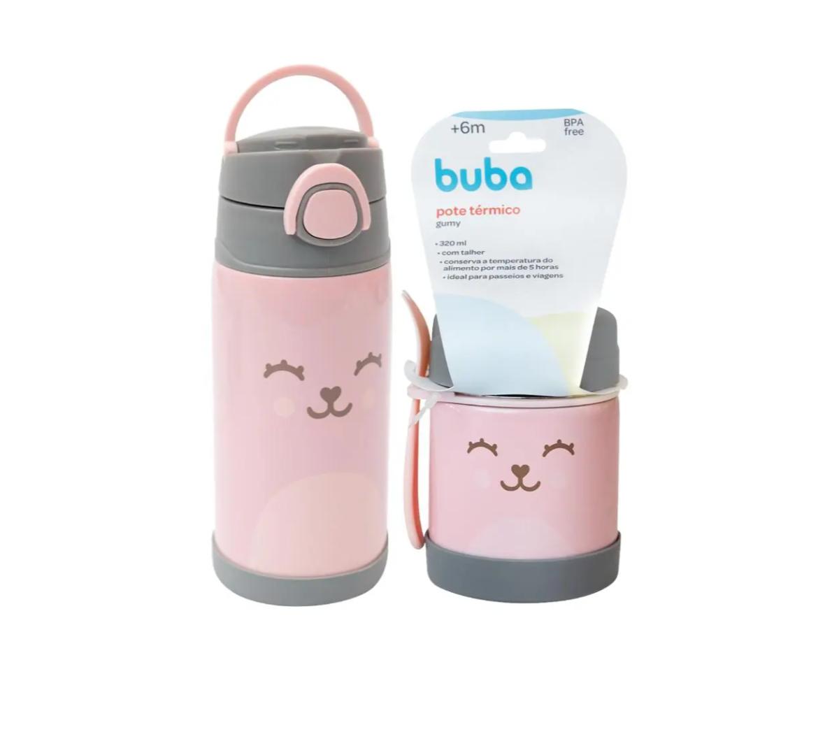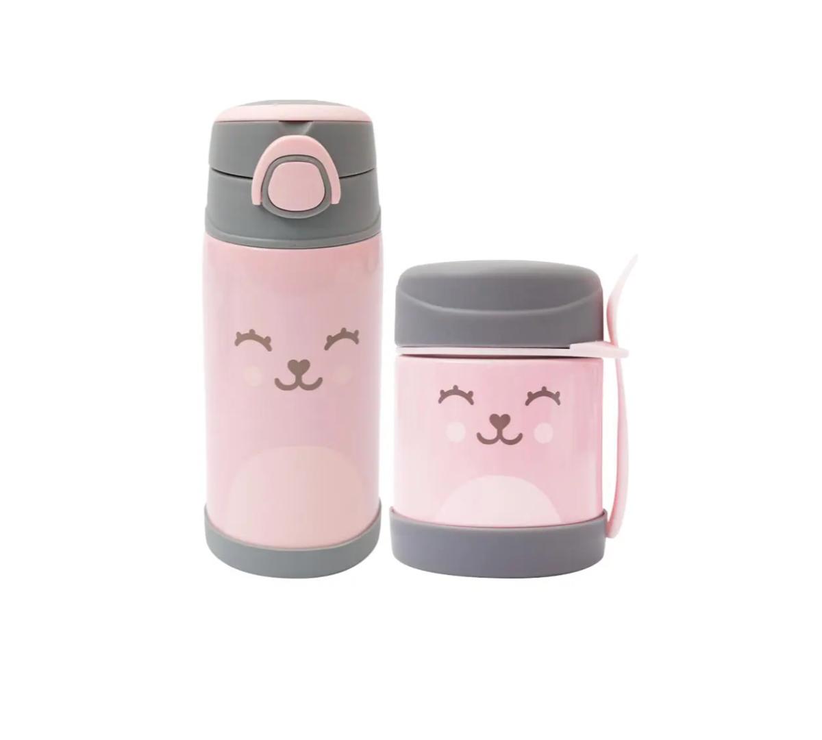 Botella de Térmica 400ml + Pote Térmico Antiderrame Buba Diseño Osito Rosa
