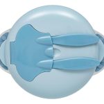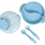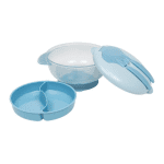 Desarrollado para facilitar el momento de la alimentación del bebé. El plato hondo viene con una ventosa para fijarlo a la mesa, evitando que se caiga durante la comida. Además, la tapa tiene un diseño especial para almacenar la cuchara y el tenedor, pudiendo ser guardado o transportado en paseos o viajes de forma más higiénica. También cuenta con un compartimento con divisiones.