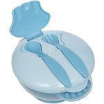 Bowl buba c/ Divisorias y Ventosa + 2 cubiertos Celeste