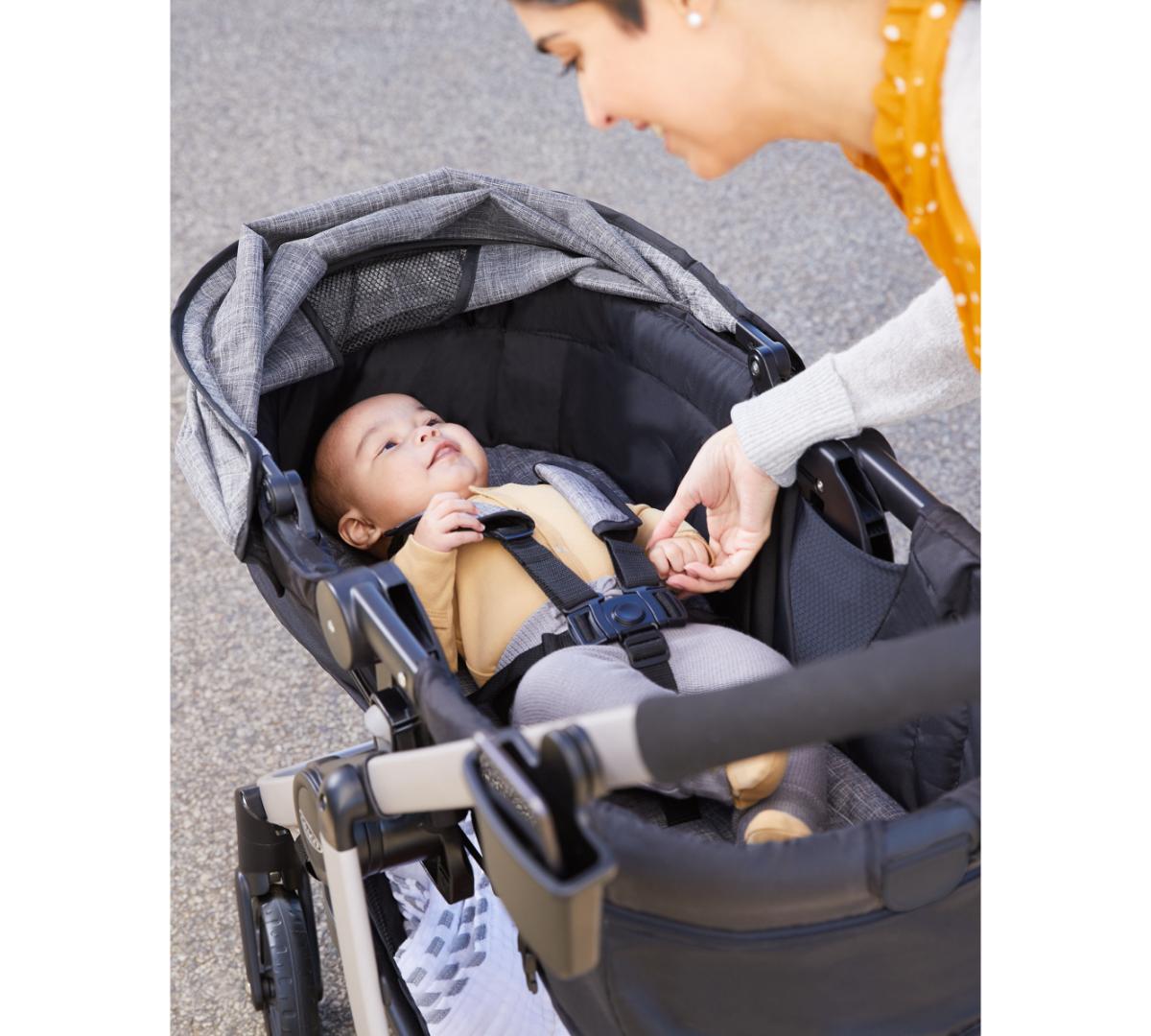 Soporta a un niño de hasta 22kg para que puedan pasear juntos durante años. El arnés convertible de 3 o 5 puntos crece con su hijo, con fundas de arnés para mayor comodidad.