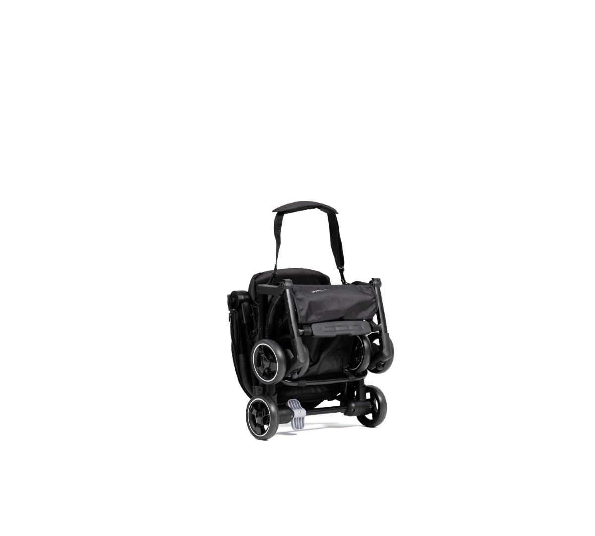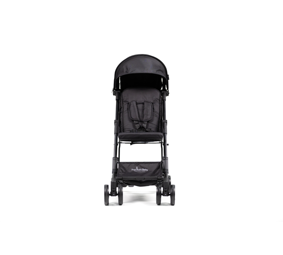 Cuenta con plegado automático, operable con una sola mano: ¡Queda tan compacto que puedes llevarlo en el compartimiento superior del avión!. El asiento cuenta con múltiples posiciones de reclinado. Cuenta con visor en la capota, red en el respaldo para ventilación, mango y barra de apoyo con detalles en ecocuero y porta vasos lateral.