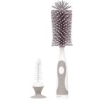 con cerdas de silicona, este cepillo es perfecto para una limpieza suave y eficaz, sin dañar los utensilios del bebé. Con un diseño innovador, incluye un cepillo para tetinas integrado y una ventosa para fijarla en superficies lisas y es ideal para mamaderas, tetinas y vasos.