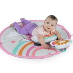 Acompaña a tu bebé desde el tiempo boca abajo hasta el juego sentado. Incluye móvil de nube con espejo que reproduce más de 20 melodías con luces (extraíble para llevar). Viene con 6 juguetes desmontables: sonaja, peluche con cascabel, medallón con sonido, flor texturizada y más. Almohadilla de apoyo para mayor comodidad en los primeros meses. Alfombra lavable a máquina y juguetes limpiables.