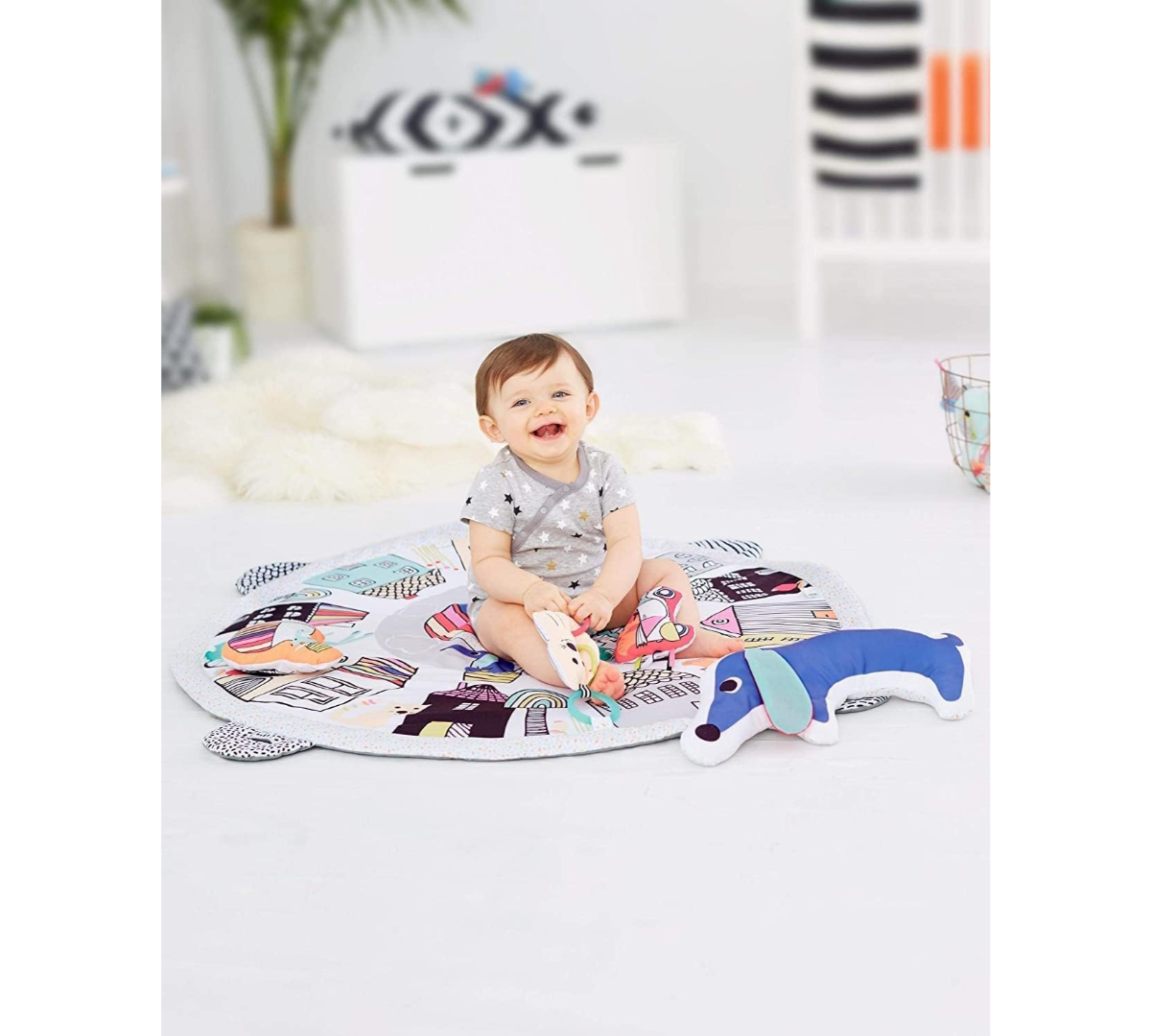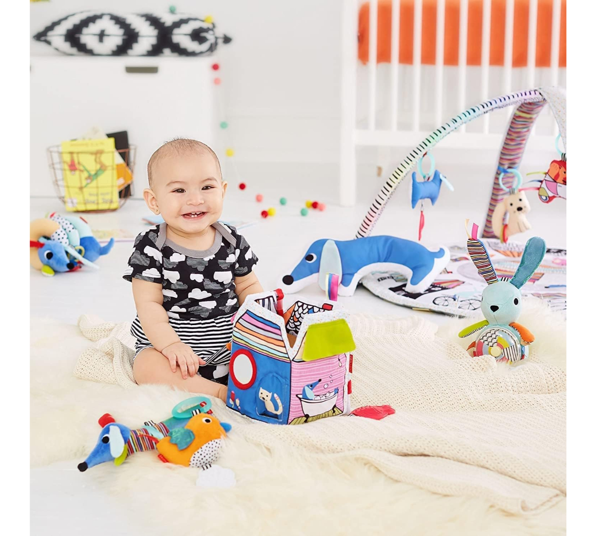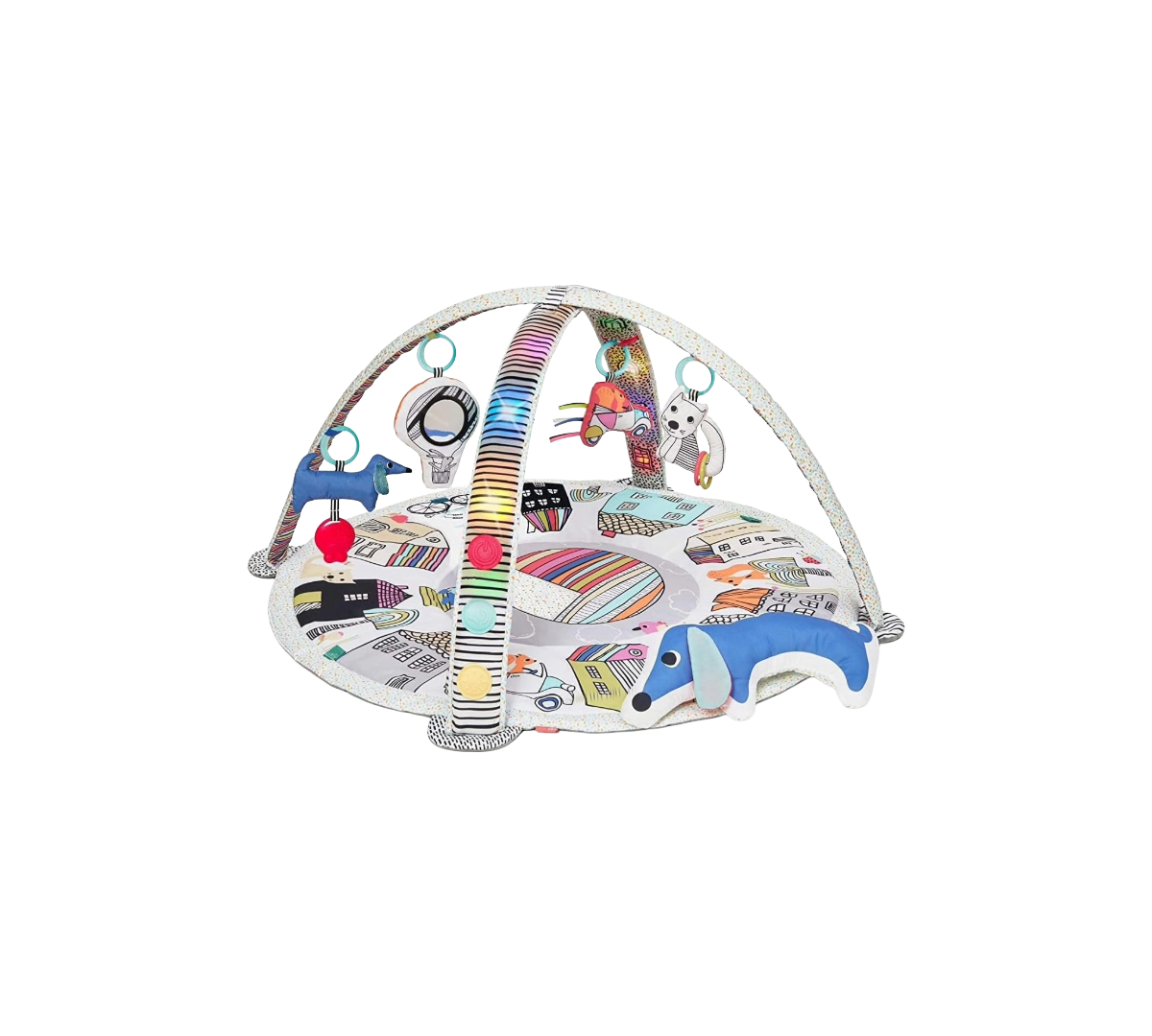 Con luces que siguen el movimiento del bebé o muestran un espectáculo de colores, y una almohadita con forma de perrito para tummy time, este gimnasio acompaña el crecimiento con diversión, aprendizaje y seguridad. Sin BPA, PVC ni ftalatos.