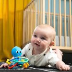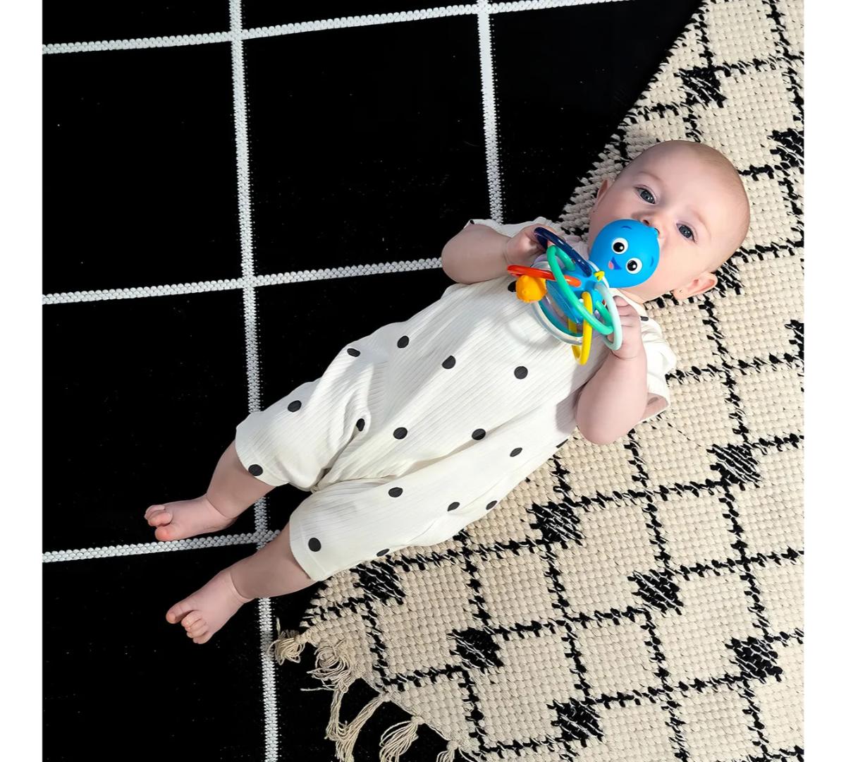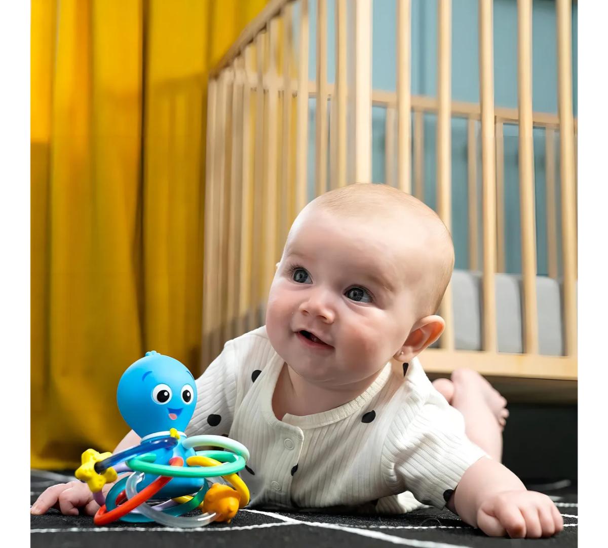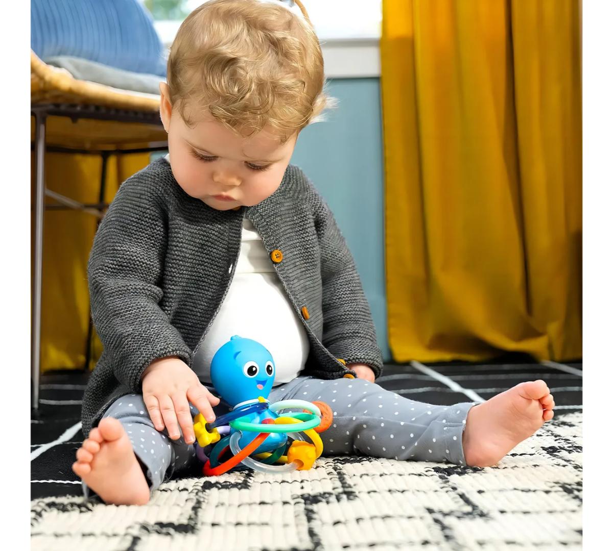 Ideal para favorecer la motricidad fina, el reconocimiento de colores y el aprendizaje causa–efecto. Apto desde recién nacidos y fácil de limpiar con paño húmedo.