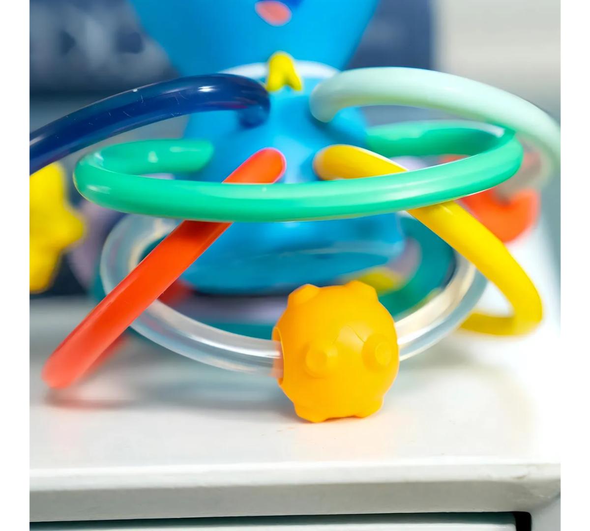 Calmá las encías y despertá los sentidos con este mordillo y sonajero en uno. Incluye 6 aros coloridos fáciles de agarrar, con distintas texturas y cuentas deslizables que entretienen y estimulan. Su sonajero oculto recompensa la curiosidad del bebé con cada sacudida.