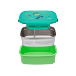 Su compartimento de acero inoxidable, no tóxico y libre de BPA, garantiza la seguridad alimentaria de los más pequeños, mientras que la tapa con sello de silicona antifugas proporciona tranquilidad a los padres. Además, el divisor ajustable y extraíble permite personalizar el espacio interno, facilitando la organización y evitando que diferentes alimentos entren en contacto. Perfecta para alimentos fríos o calientes.