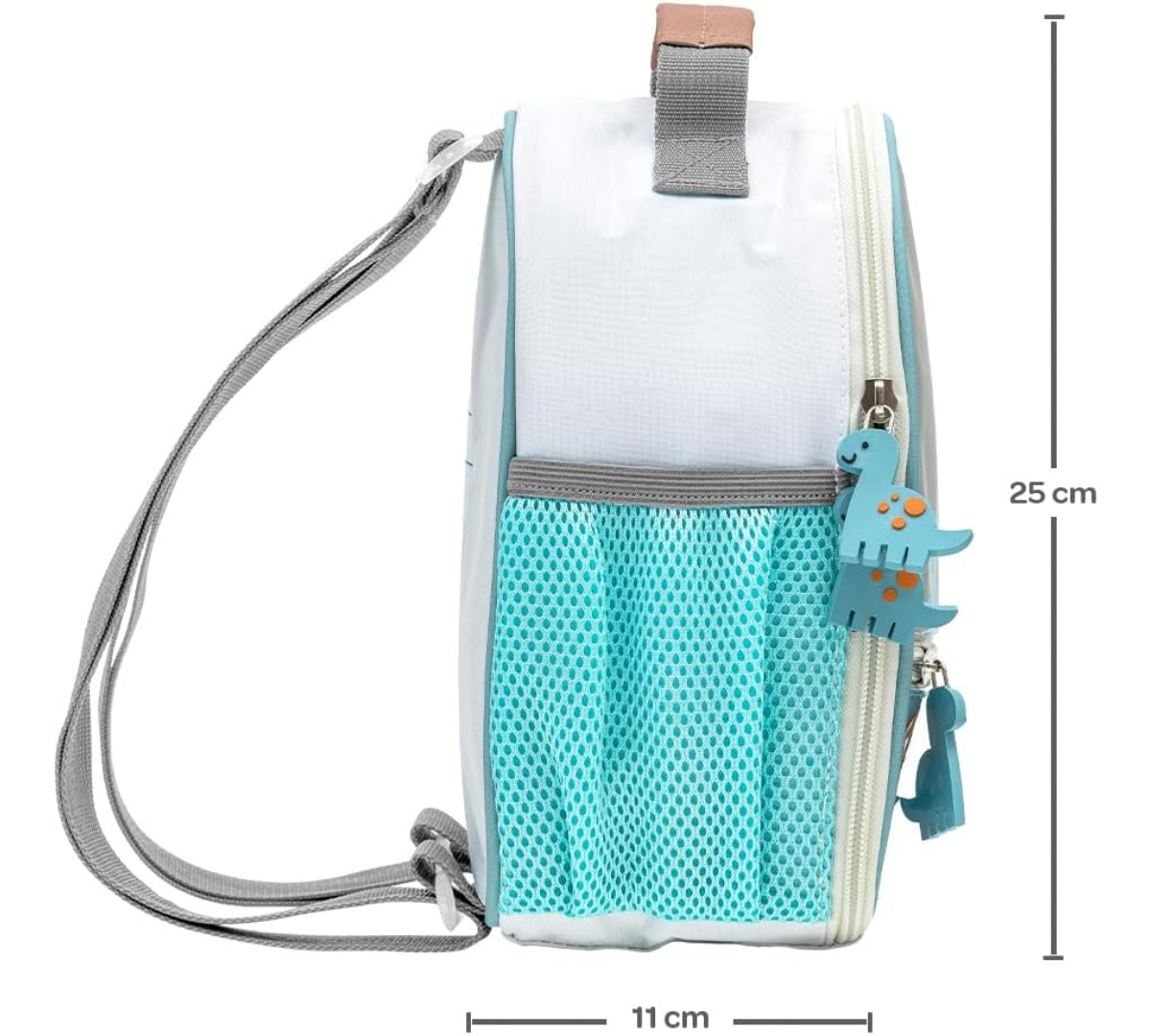 Con medidas aproximadas de 20 × 25 × 11 cm, es resistente y fácil de transportar. Fabricada en poliéster de alta calidad, combina durabilidad y un diseño divertido, siendo una opción perfecta para el uso diario.