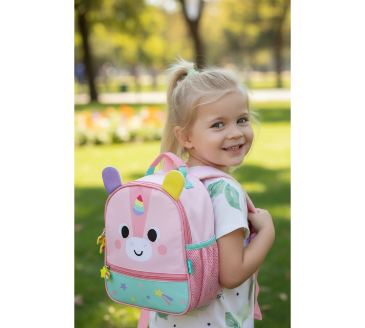 Con medidas aproximadas de 20 × 25 × 11 cm, es resistente y fácil de transportar. Fabricada en poliéster de alta calidad, combina durabilidad y un diseño divertido, siendo una opción perfecta para el uso diario.