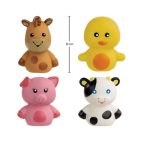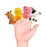 Set de 4 títeres de dedo en vinil suave con forma de animalitos de granja, ideal para juegos, cuentos y estimulación temprana. Recomendados para niños desde los 3 años, son lavables, seguros y también pueden usarse durante el baño.