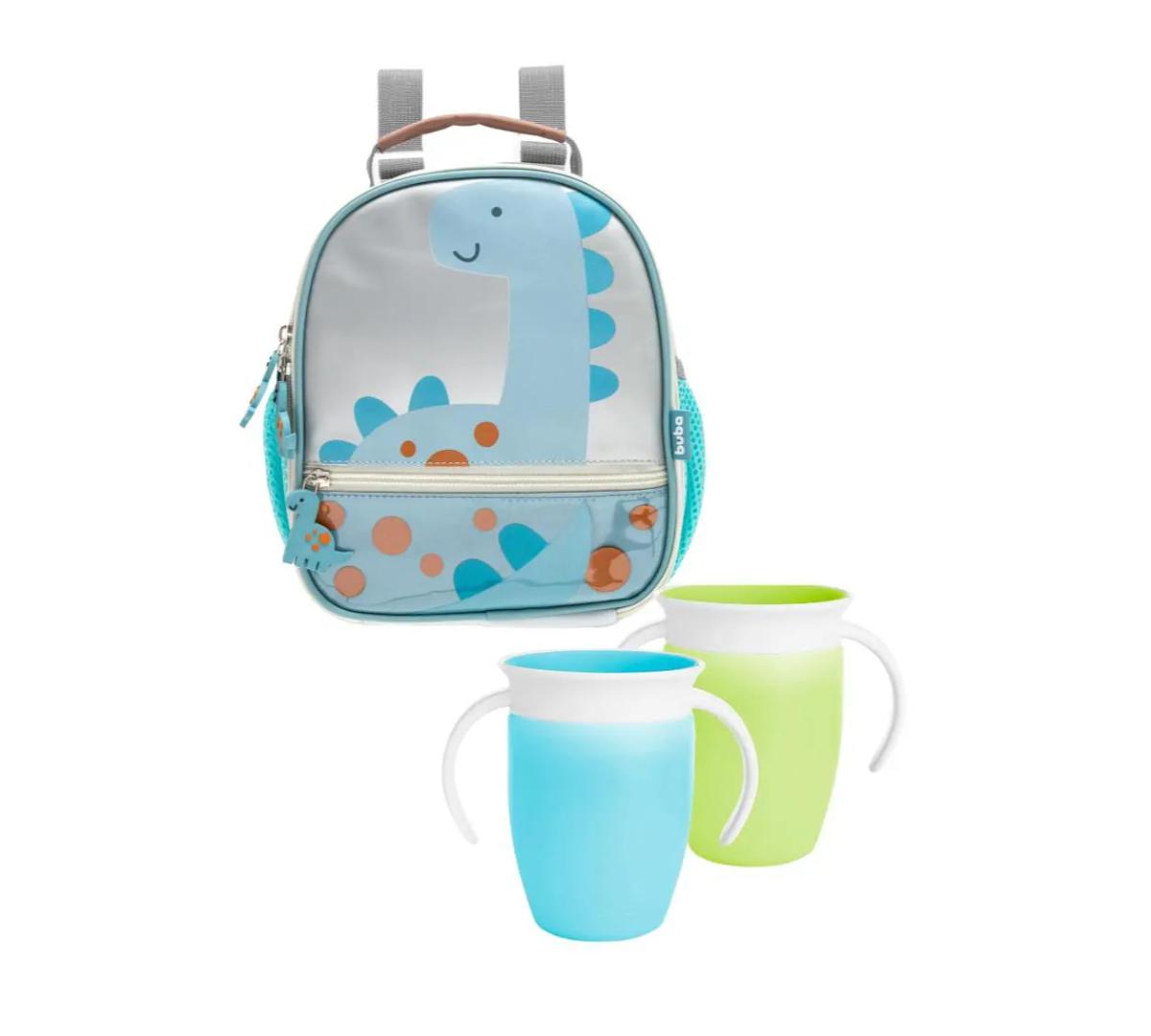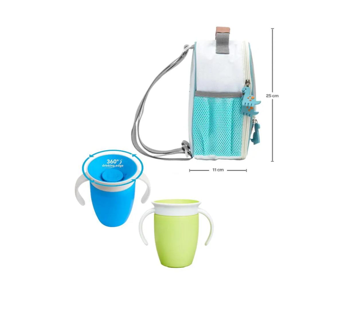 Mochila Lunchera Termica + 2 Vasos Miracle Dino Verde