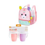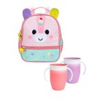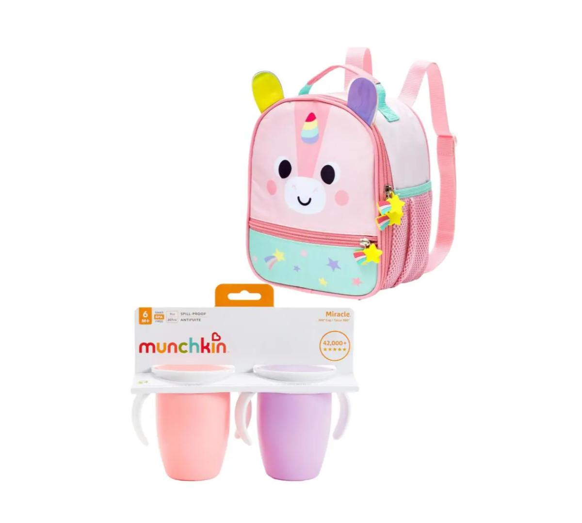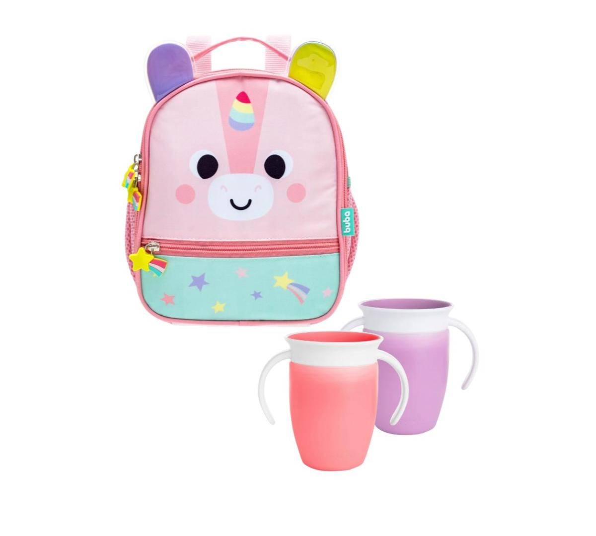 Mochila Lunchera Termica + 2 Vasos Miracle Dino Unicornio Rosa
