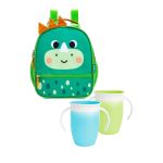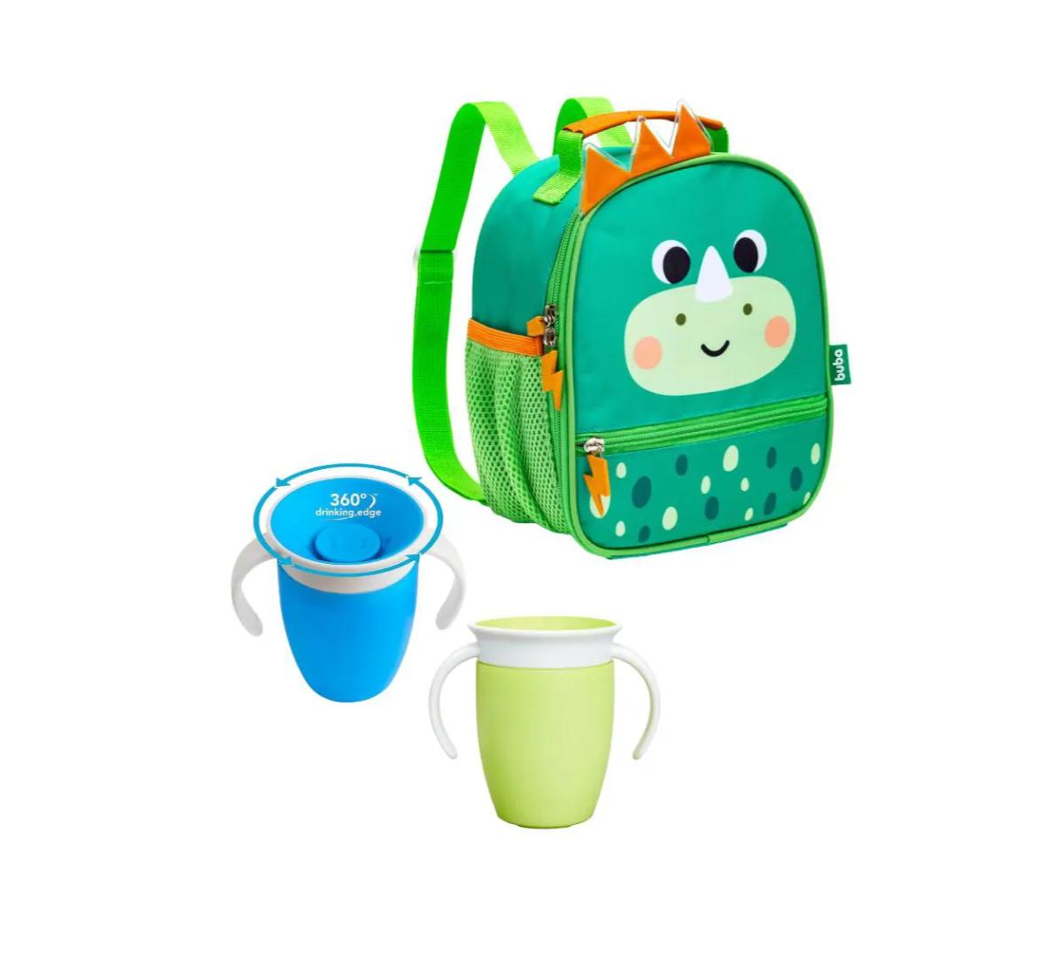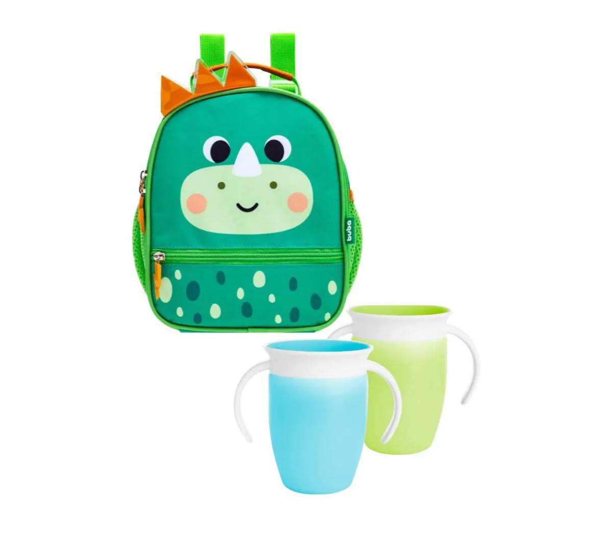 Mochila Lunchera Termica + 2 Vasos Miracle Dino Verde