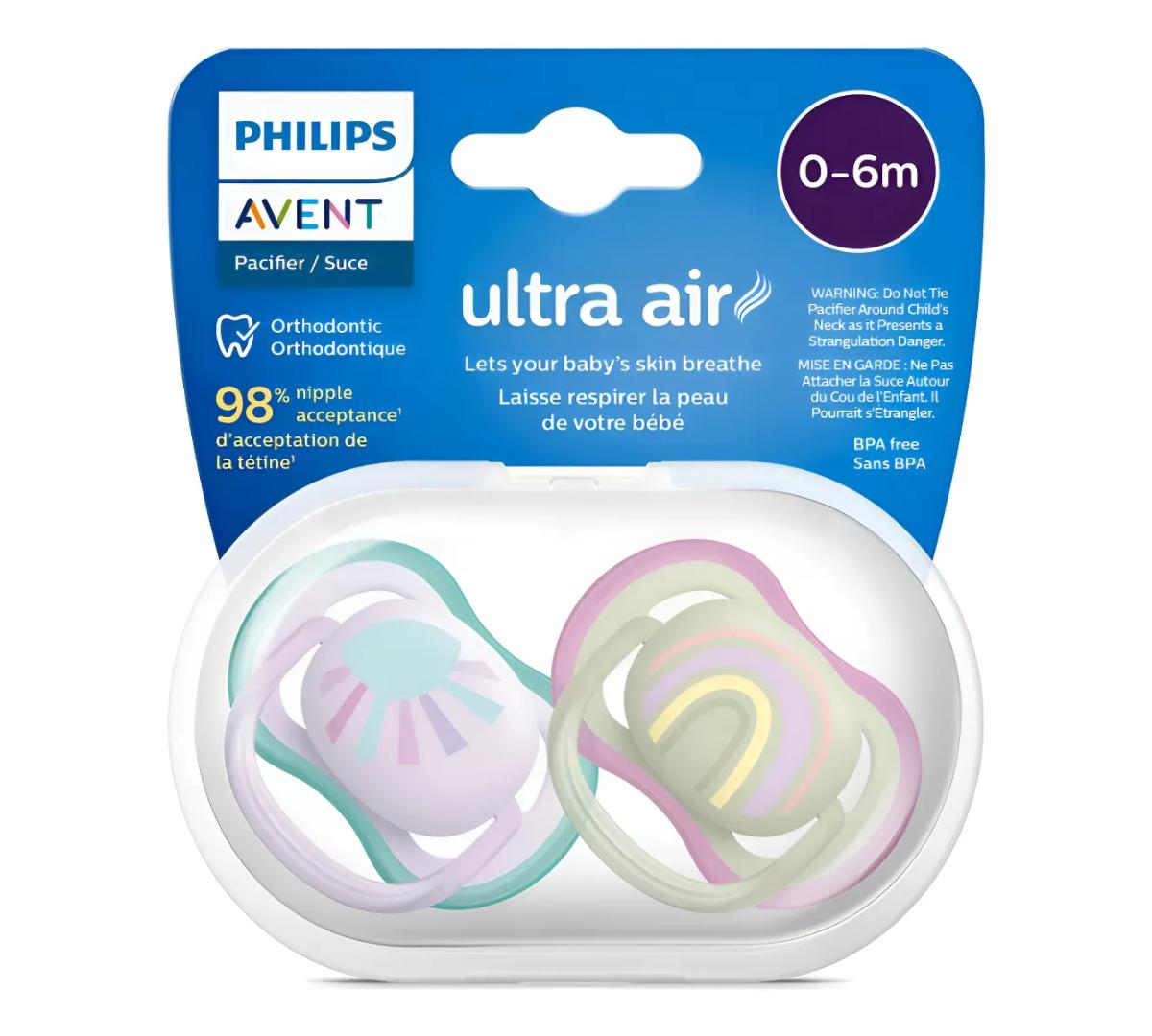 Pack x 2 Chupete Anatomicos Philips Avent Ultra Air 0-6meses Rainbow Niño