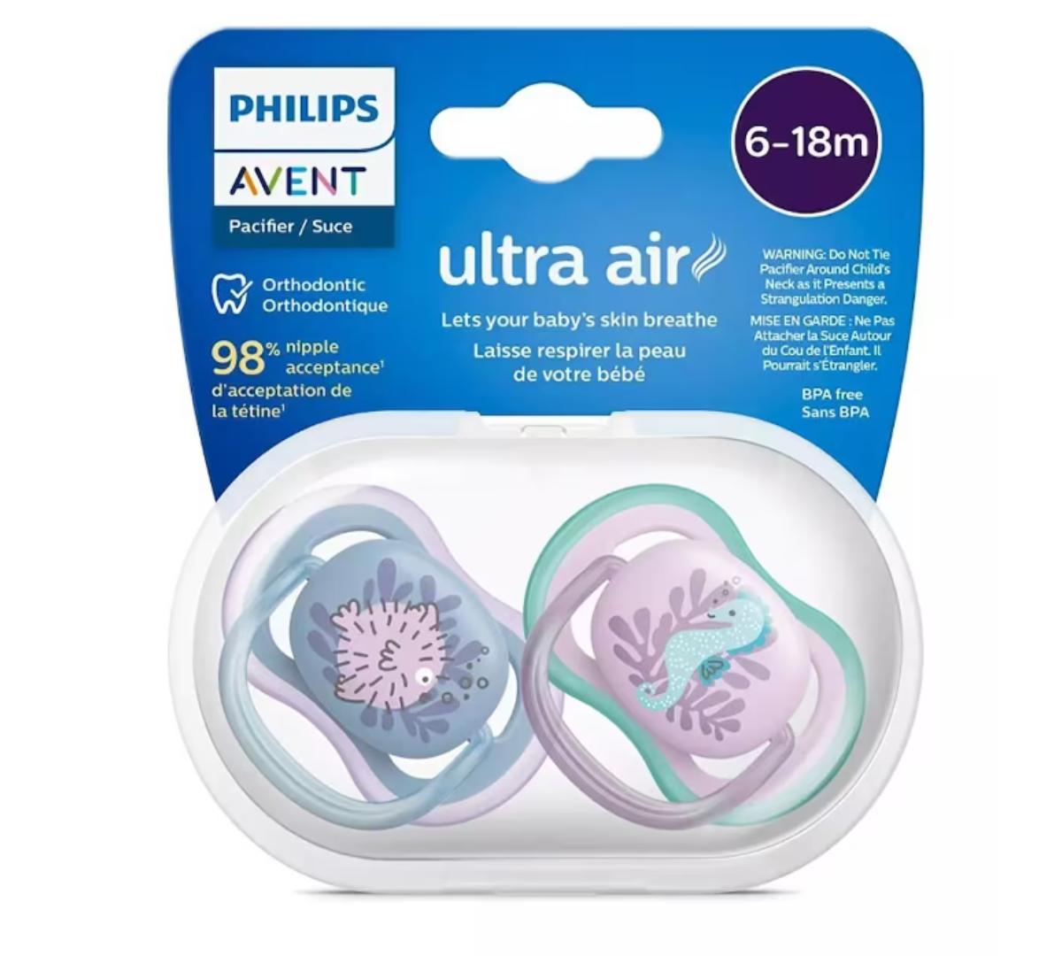 Pack x 2 Chupete Anatomicos Philips Avent Ultra Air 6-18meses Animales marinos Niña