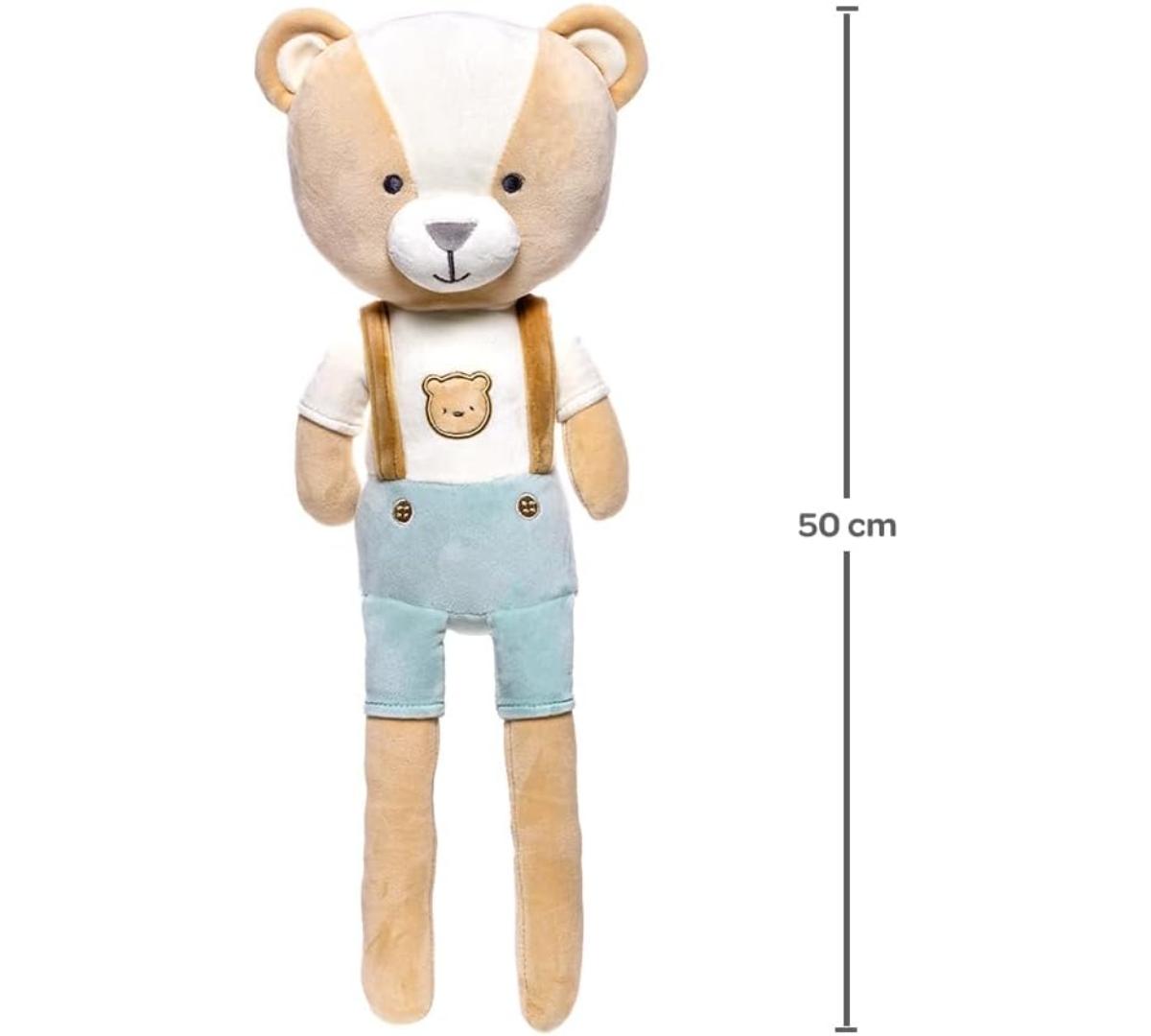Suave y delicado, confeccionado en 100 % poliéster, es perfecto para acompañar al bebé desde los 3 meses. Con medidas aproximadas de 50 × 17 × 12 cm, es liviano, seguro y fácil de manipular por los niños.