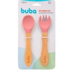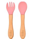 Set de 2 Cubiertos buba de Bambú c/ Punta de Silicona Rosa