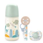 -Biberón de 270ml con tetina SX Pro de flujo medio. La tetina SX Pro es de silicona y cuenta con sistema anticólico. El flujo medio está recomendado para para todos los líquidos de densidad media y puede utilizarse con la leche, los zumos o el agua. La tetina SX Pro consigue que la lengua se mantenga en la misma posición natural que cuando el bebé mama del pecho.