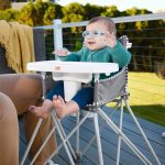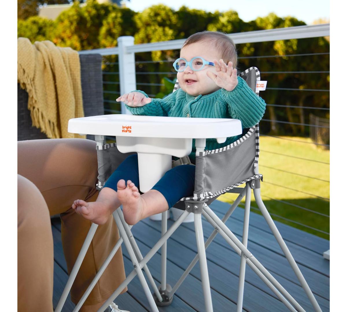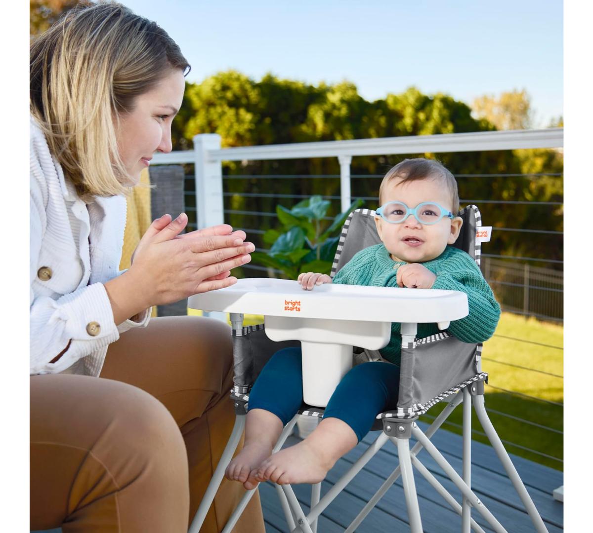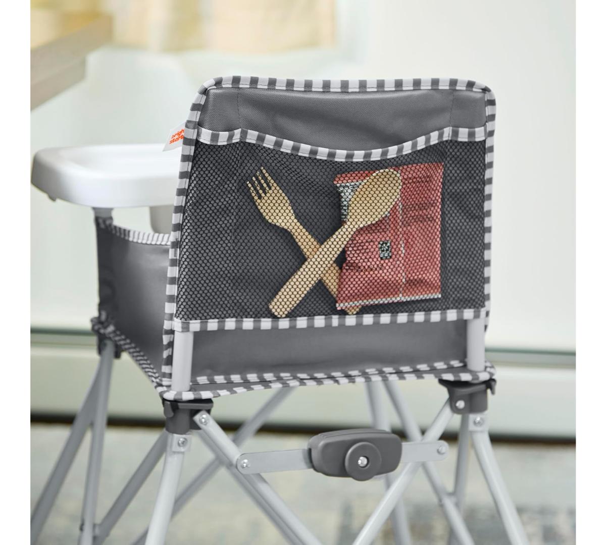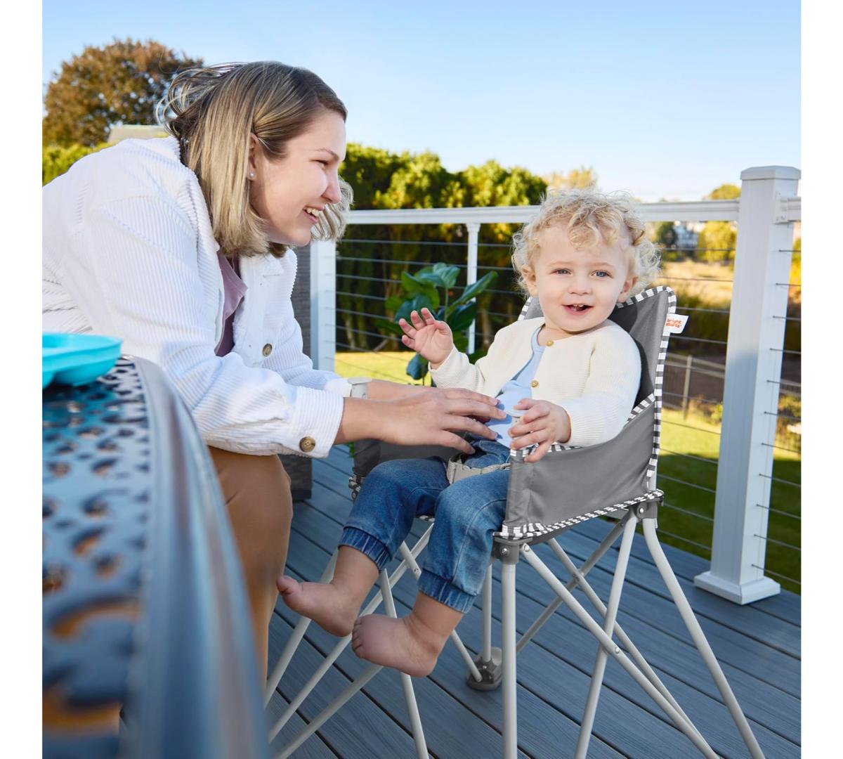 Las comidas fuera de casa ahora son más fáciles. Se abre y se pliega en segundos, ideal para restaurantes, viajes o el patio de casa. Incluye bandeja desmontable libre de BPA, apta para lavavajillas, arnés de seguridad de 3 puntos y tela fácil de limpiar.