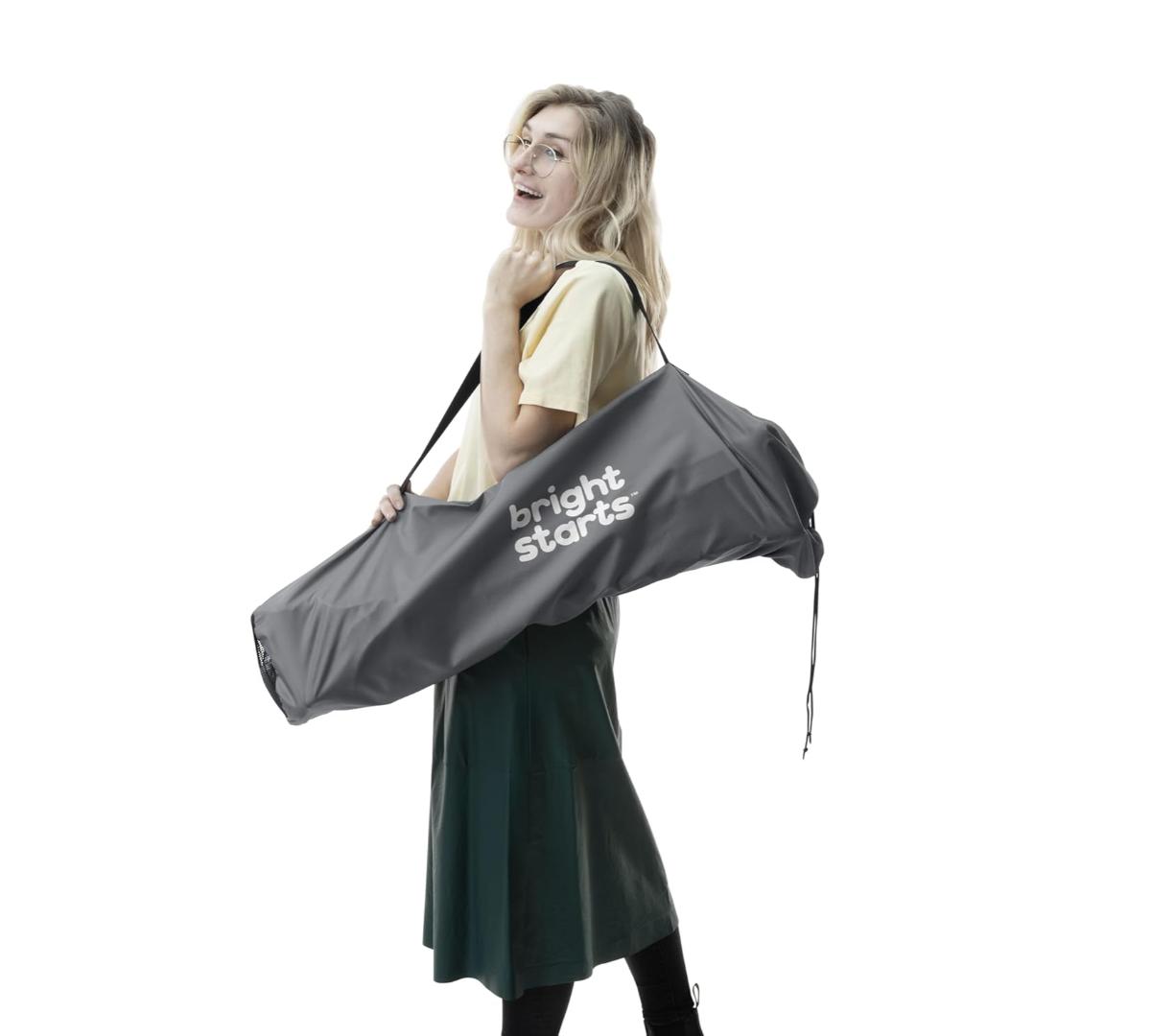 Cuenta con bolsillo trasero para snacks y accesorios, y bolsa de transporte. Apta para bebés desde los 6 meses hasta 45 lb, con diseño unisex y uso interior o exterior.
